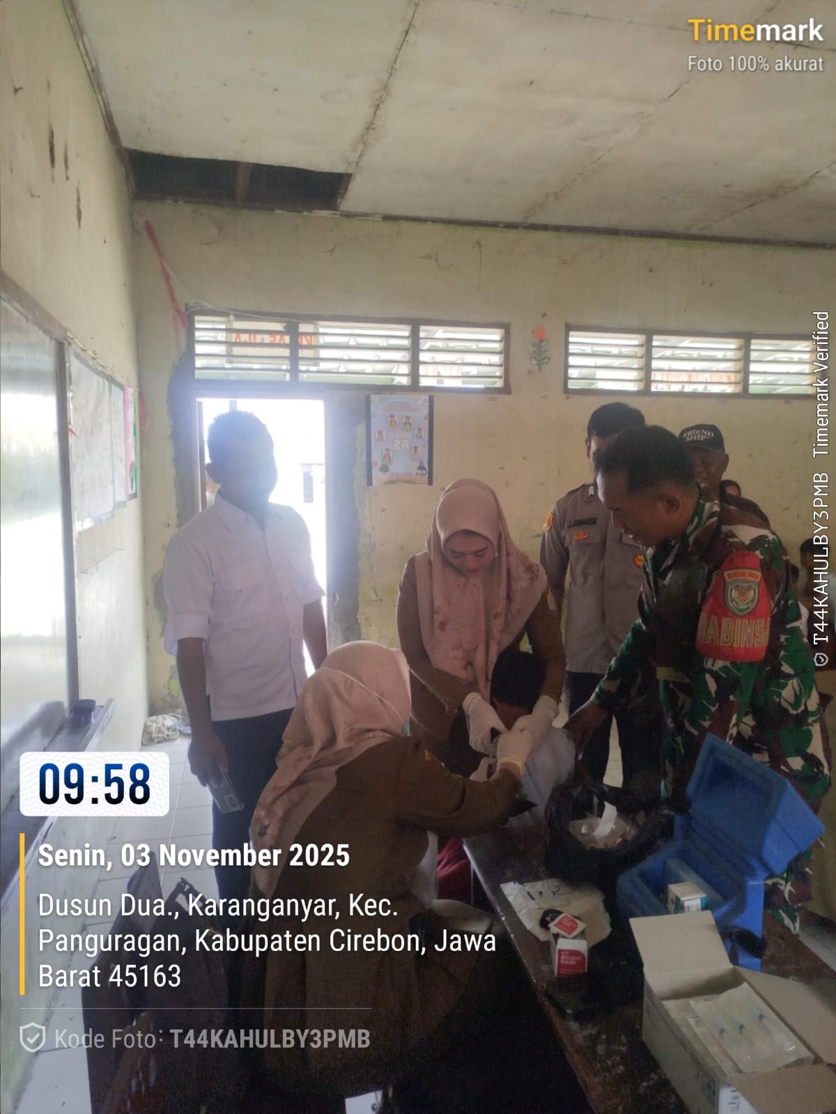 Cirebon – Dalam rangka mendukung program pemerintah di bidang kesehatan, anggota Koramil 0620-19/Arjawinangun, Sertu Rosa selaku Babinsa Desa Karanganyar Kecamatan Panguragan Kabupaten Cirebon, melaksanakan monitoring kegiatan vaksinasi Bulan Imunisasi Anak Sekolah (BIAS) di SDN 1 Karanganyar, Senin (03/11/2025) pukul 08.30 WIB s/d selesai.