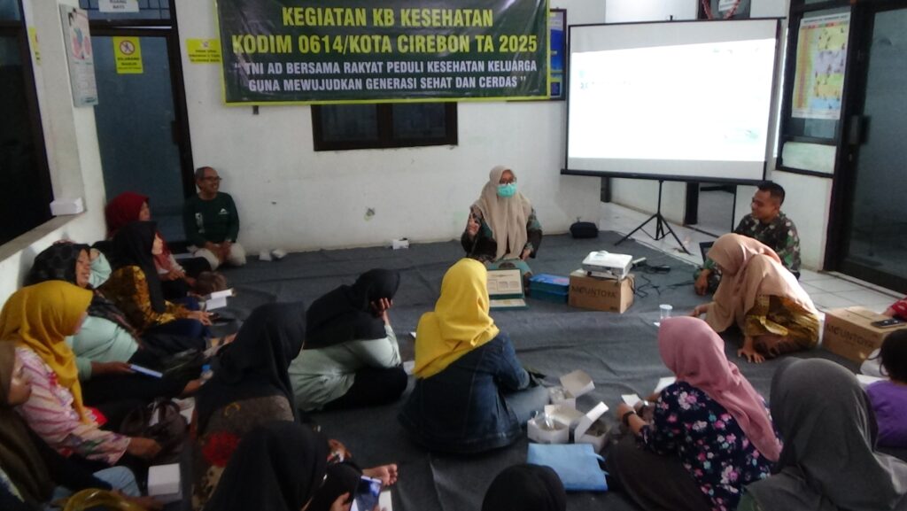 Kota Cirebon, (Jum’at, 7/11/2025), — Kodim 0614/Kota Cirebon bekerja sama dengan Puskesmas Citopeng Kelurahan Argasunya menggelar kegiatan Keluarga Berencana (KB) Kesehatan dengan tema “TNI AD Bersama Rakyat Peduli Kesehatan Keluarga Guna Mewujudkan Generasi Sehat dan Cerdas”, bertempat di Klinik PONED Perumahan BTN Nusantara, Kelurahan Argasunya, Kecamatan Harjamukti, Kota Cirebon.