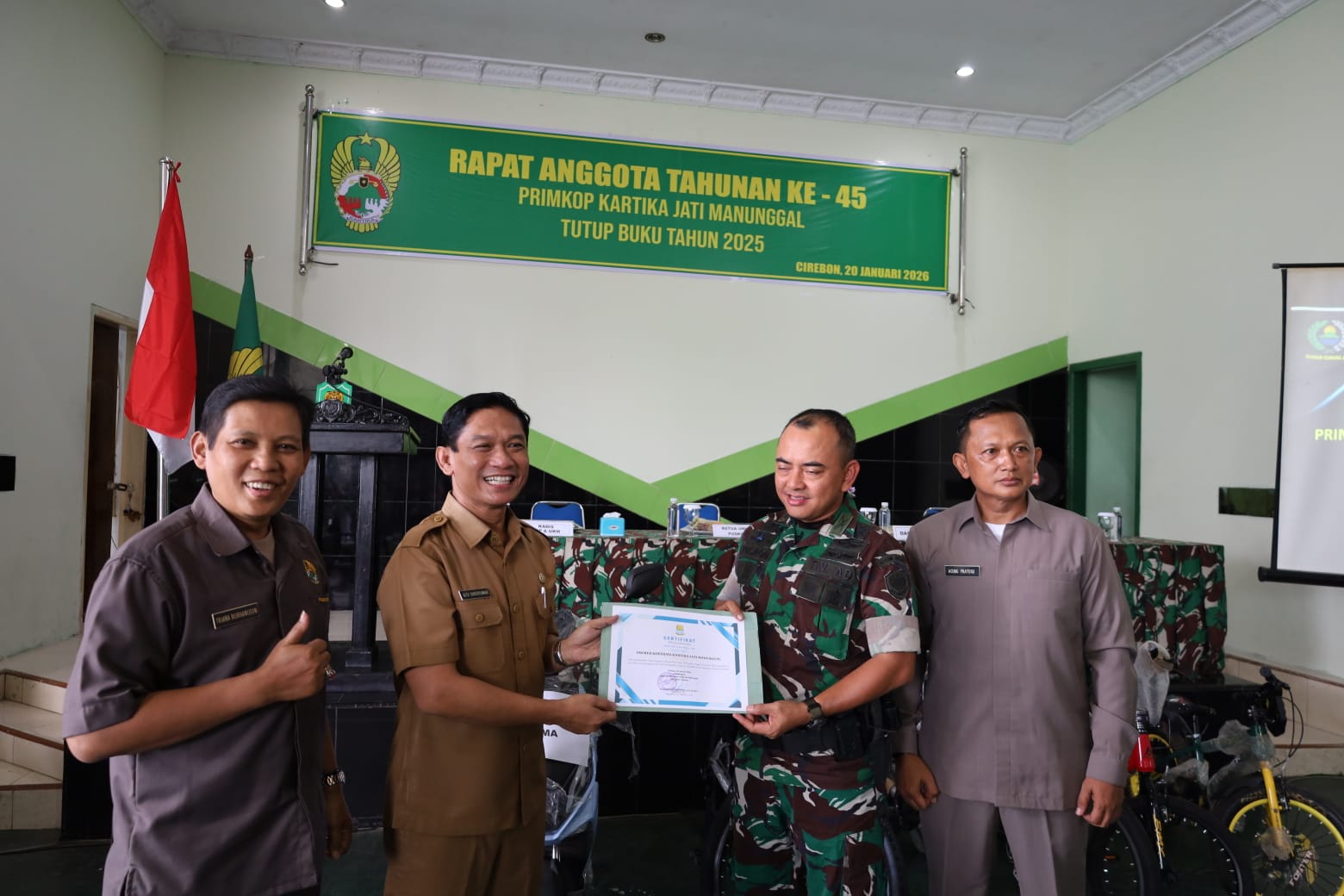 Cirebon, 20 Januari 2026 — Dalam rangka evaluasi kinerja dan persiapan menghadapi tahun anggaran berikutnya, Kodim 0620/Kabupaten Cirebon melaksanakan Rapat Akhir Tahun TA 2025. Rapat tersebut diikuti oleh seluruh perwira, tamtama, dan pegawai negeri sipil (PNS) yang bertugas di Makodim 0620/Kabupaten Cirebon.